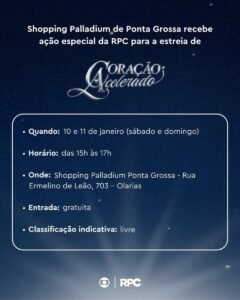 Prepare-se para viver uma experiência especial no Palladium! Nos dias 10 e 11/01 (sábado e domingo), o shopping recebe o lançamento da novela Coração Acelerado, em uma ação realizada em parceria com a RPC.